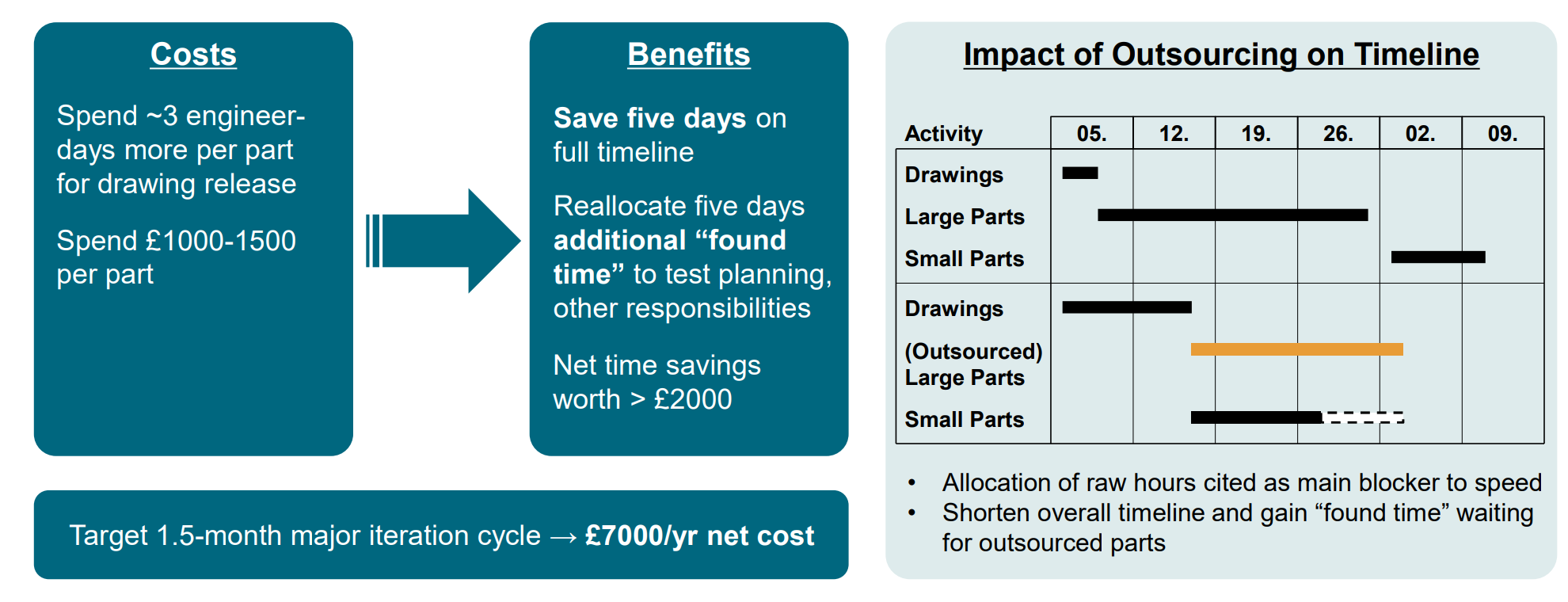 The impact of the identified solutions was projected to produce an annual net savings of £450,000 and a 5-day improvement in average lead times.
