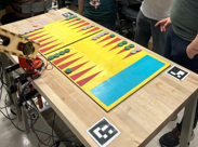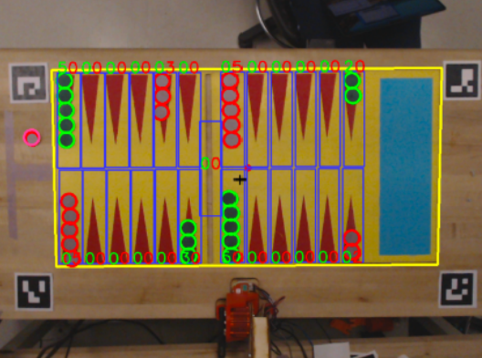 Beyond creation of the robot and software, we also needed to make a giant backgammon board! We lasercut the board in two halves from the same wood used for the links and laser etched features to aid our painting process. 40mm checkers were 3D printed from PLA and sanded to reduce glare.