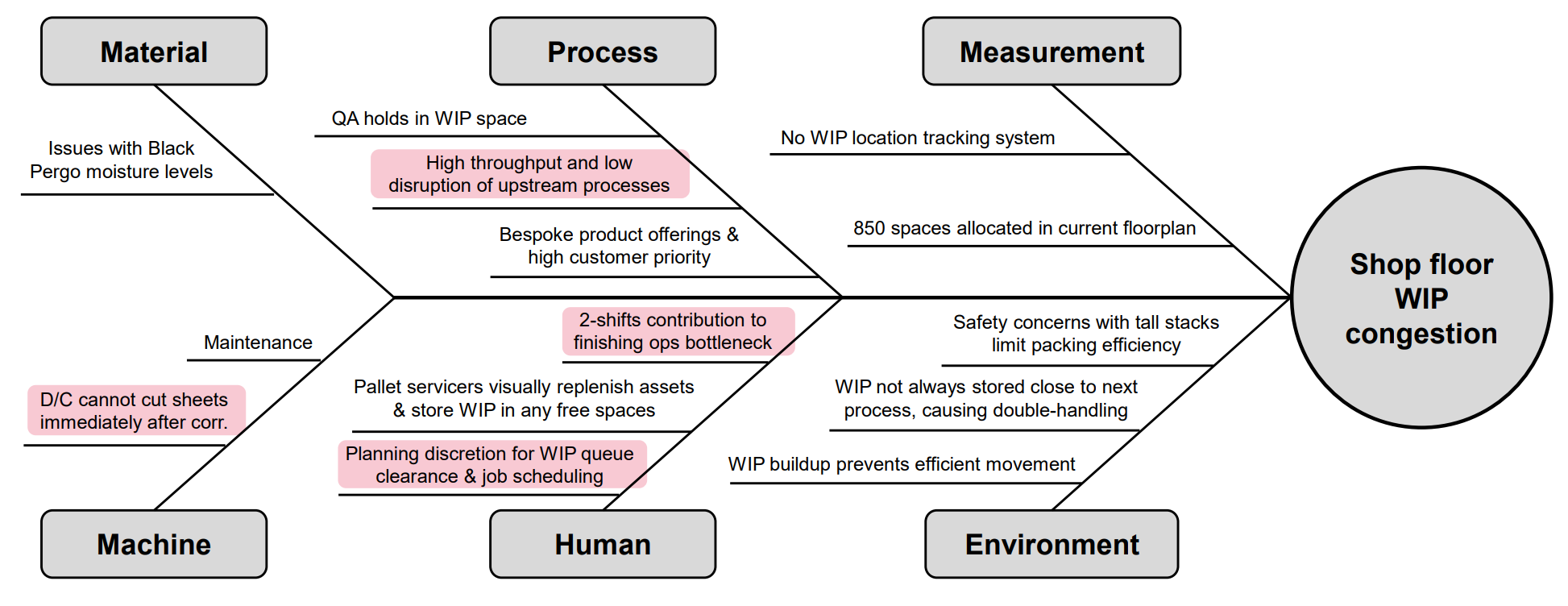 Work-in-progress (WIP) management was a prevalent issue at Huhtamaki BCP. The imbalance of the production line, absence of a WIP tracking system and long dwells of WIP on the shop floor and in the storage areas had led to an elevated WIP pallet congestion problem. It was projected that Huhtamaki BCP is spending £750,000/yr to combat its WIP pallet congestion problem.
